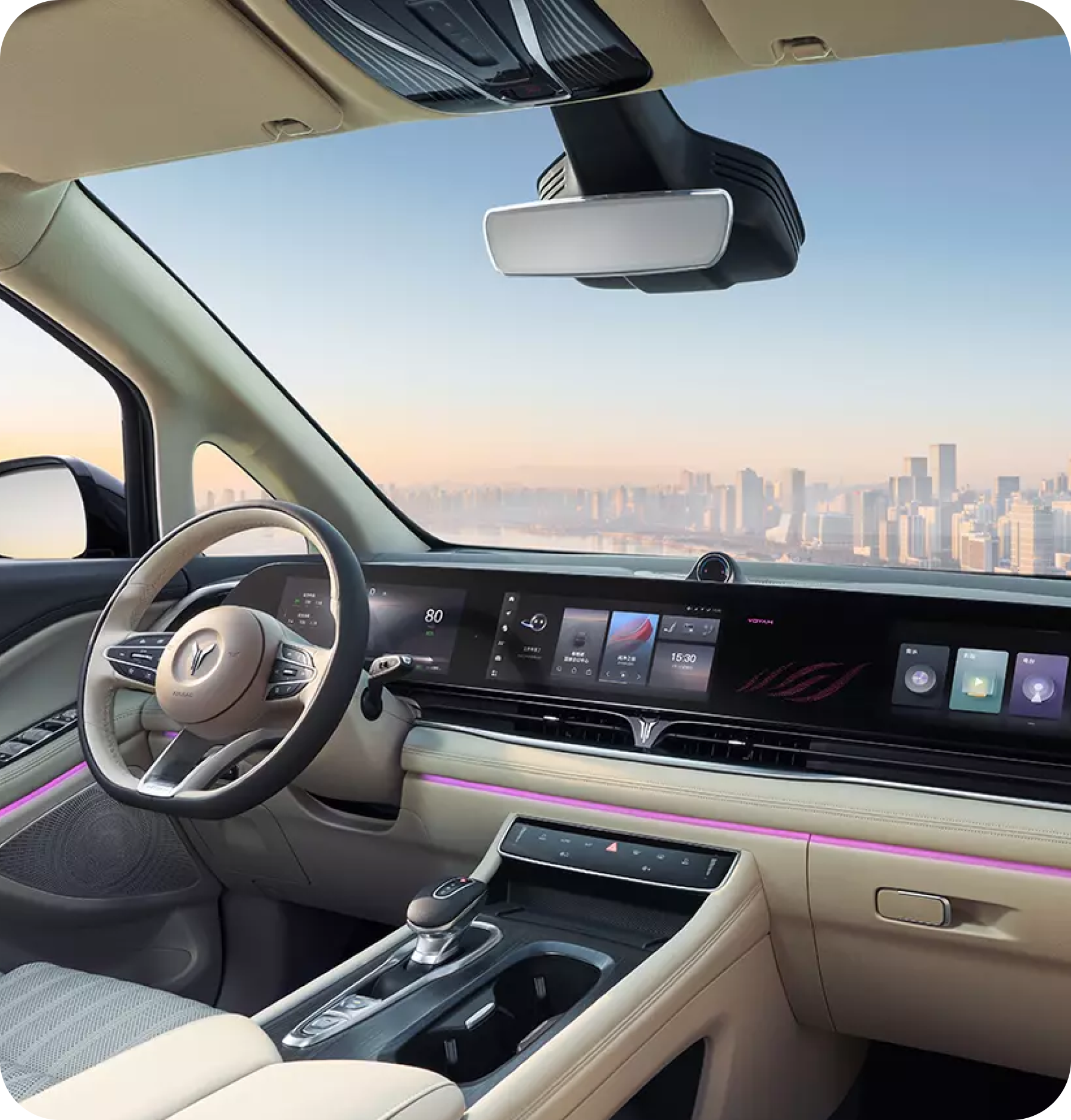 90 - дюймовая световая полоса постоянно расширяет область отображения экрана. Сверхширокий диапазон обзора 310 ° делает контур кузова автомобиля четко видимым.