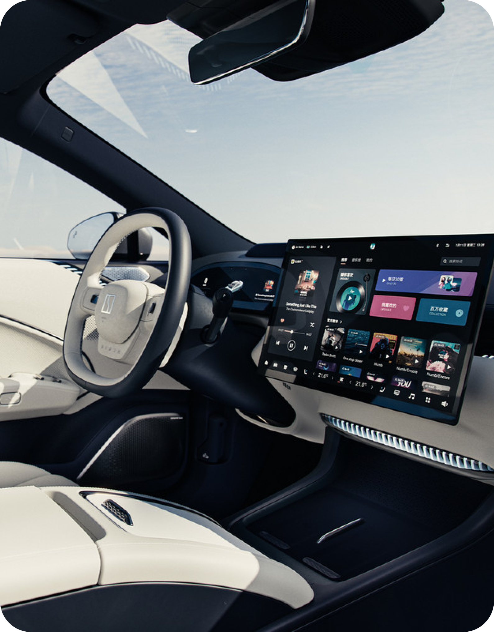 Точка соединения передней стойки с кузовом идеально заключена в передний люк, а крыша плавно простирается от передней к задней части автомобиля. Сверхбольшой 1,69 ㎡ купол с наносеребряным покрытием, широкий обзор. Обволакивающая форма - скрытый дизайн дверных ручек, безупречное продолжение боковых линий. Окрашенная поверхность и стекло едины и интегрированы. Безрамный дизайн наружных зеркал с электроприводом.